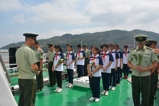 最后,参加活动的边防官兵与师生们在马江海战先烈们曾抗击外寇为国捐躯的海疆古战场上,放飞千纸鹤,将洁白的菊花缓缓洒入大海,以告慰海上英灵,寄托哀思。