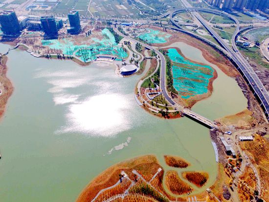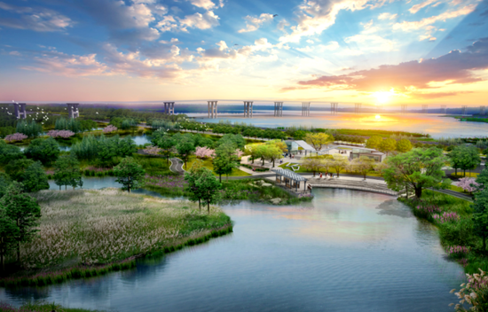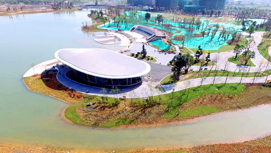 在滨水湿地区,湖岸大量采用缓坡入水结合的方式,增加湖体的库容,也形成大面积的生态湿地景观。“结合休闲栈道平台、休憩廊亭、观鸟亭等,建设中我们在湖区围起了自然又不是乐趣的湿地廊道,同时能对湖体的水质起到重要的净化作用。”