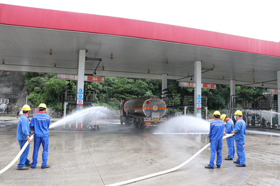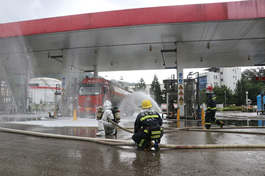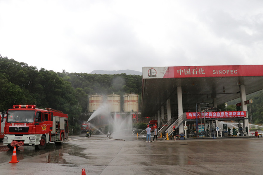 为进一步强化和完善油库应急演练工作,提升应对突发危化品生产安全事故处置能力,9月4日上午,马尾区应急管理局、区消防救援大队、兴闽油库、实华福州分公司联合开展危化品企业应急消防演练。 演练假设兴闽油库赋油台中的输油管道破裂,发生油品泄漏,情况十分危急,油库安全工作人员立即启动危化品事故处置应急救援预案,并同时拨打119报警。