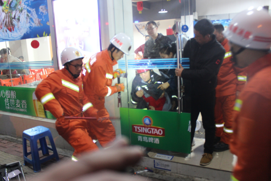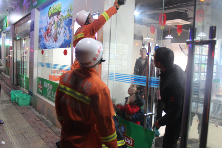 据小女孩的家人称:当时小女孩在店里玩耍,突然小女孩的家人听到小女孩在哭,跑过来一看,发现小女孩的手指被玻璃门卡住,家人立即拨打“119”求救。