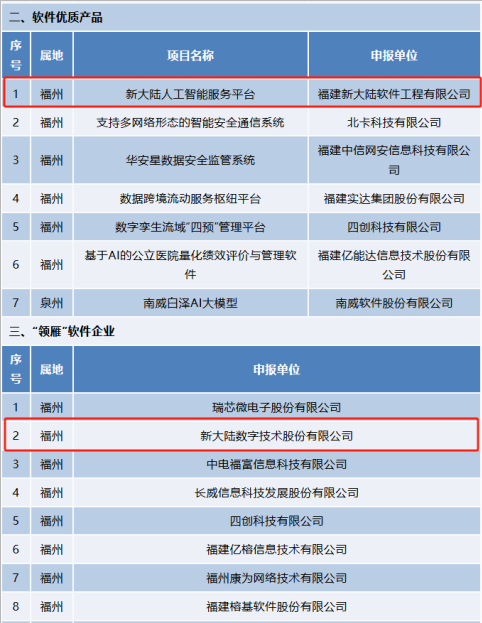 近日,福建省工业和信息化厅公布了2024年省级人工智能产业发展项目名单。其中,马尾企业新大陆数字技术股份有限公司获评“人工智能‘领雁’软件企业”,推出的“新大陆人工智能服务平台”项目还获评“软件优质产品”。