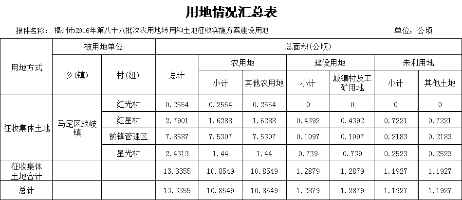 根据《中华人民共和国土地管理法》、《福建省实施〈中华人民共和国土地管理法〉办法》的有关规定及福建省人民政府(闽政地〔2017〕75号)批准的《福建省人民政府关于福州市2016年度第八十八批次农用地转用和土地征收实施方案的批复》,同意征收。现予以公告如下: