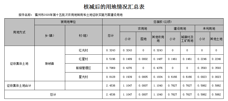 根据《中华人民共和国土地管理法》、《福建省实施〈中华人民共和国土地管理法〉办法》的有关规定及福建省人民政府(闽政地〔2022〕333号)批准的《福建省人民政府关于福州市2020年度第十五批次农用地转用和土地征收实施方案的批复》,同意征收。现予以公告如下: