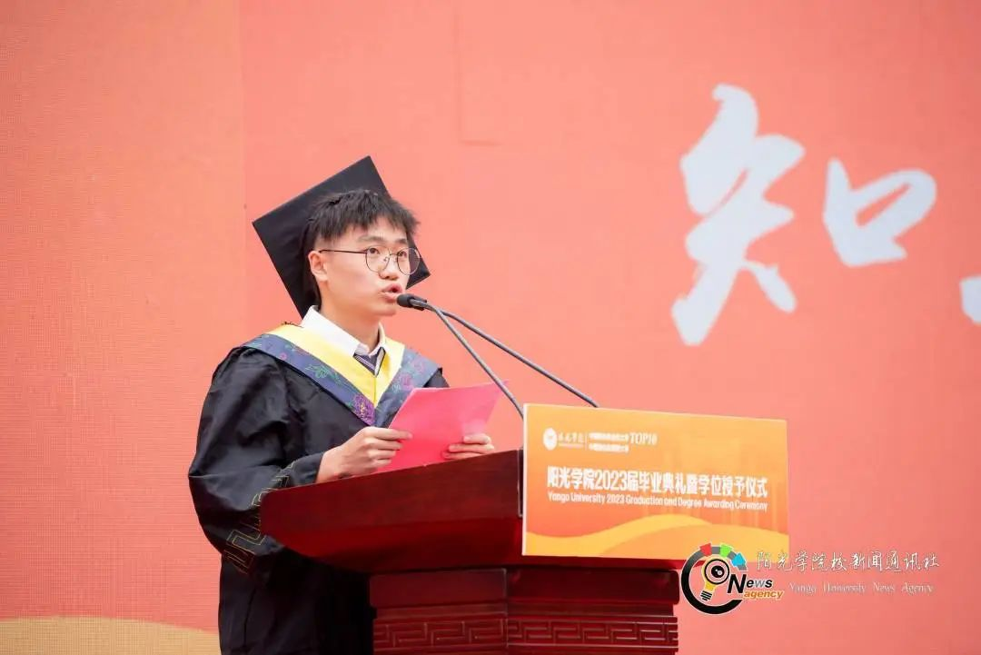 “这四年,母校教会了我如何让自己变得‘硬核’,让我充满自信地把握每一次成长的机会!”毕业生代表叶立恒由衷感慨,在各式各样实战项目的打磨中,自己的专业技术得到了质的飞跃,最终得以圆梦“大厂”。他表示,自己将怀揣对母校的感恩之情走出校园,在风雨里做个大人,在阳光下做回孩子,以实际行动诠释新时代青年的责任与担当。