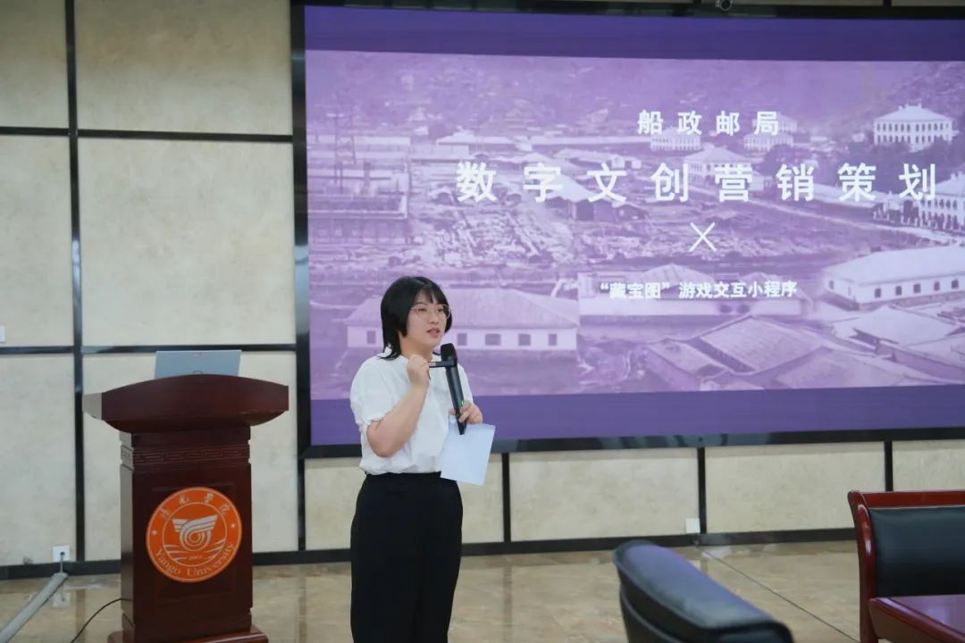 在交流座谈环节,元宇宙与新媒体学院教师陈冬琳做了船政文创项目创意思路分享,校企双方进行了深入交流。(元宇宙与新媒体学院供稿)