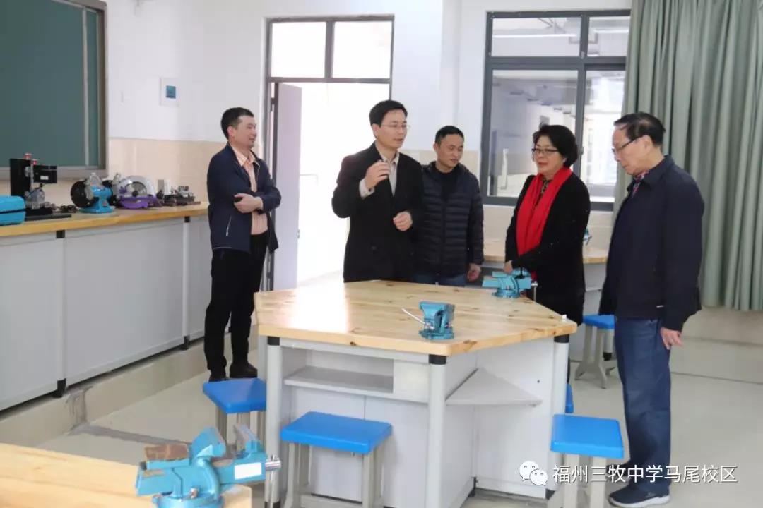 3月19日上午,马尾区人大侨台委主任陈爱萍和马尾镇纪委书记黄熠亮到马尾区三牧中学调研指导工作。官福城校长、蓝跃乾书记参加调研。