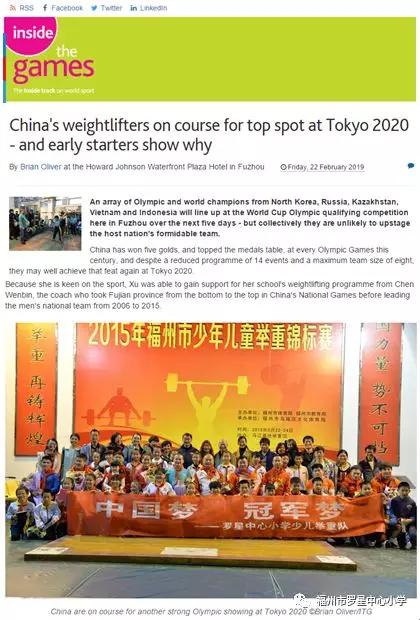 2月23日,由国际举重联合会(IWF)主办的2019年举重世界杯赛暨东京奥运会资格赛在福州市马尾体育馆开幕。在英国专业的奥林匹克新闻报道网站inside the games上,英国媒体人By Brian Oliver分别在22日和25日对福州马尾罗星中心小学举重队进行两篇赛事报道,以大幅图片和文字宣传了罗星中心小学举重队活动和取得的成绩,并以该校举重训练机制和取得骄人成绩向世界解读了中国的举重实力实至名归,有着坚实的后备培养机制和人才。