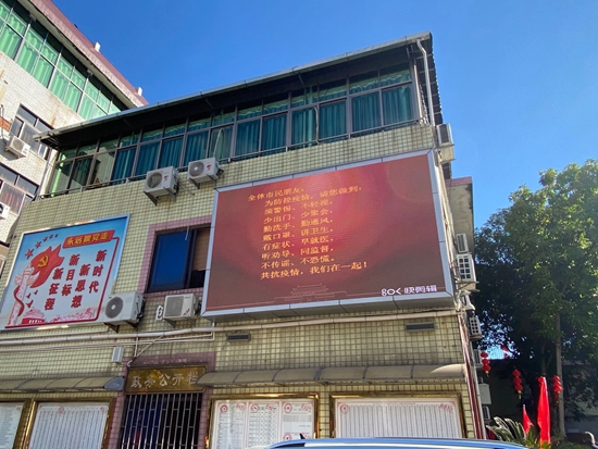 “马尾主城区和亭江镇、琅岐镇的社区、商场等显要位置的LED展板均已播放关于防控疫情的宣传,大大提高了群众的知晓率。”马尾区委宣传部相关负责人介绍,“此次我区通过LED显示屏滚动播放疫情防控宣传标语的方式,引导群众知晓疫情防控、参与疫情防控,营造浓厚宣传氛围。”