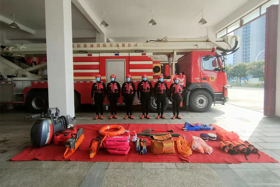 14日,各消防救援站组织救援人员对抗洪抢险进行再发动,组织学习抗洪抢险救援技术和安全要则,全面开展橡皮艇、救生衣、绳索等抗洪抢险救援器材的检查和维护保养,组织开展抗洪抢险救援操法训练和避险训练,时刻做好出动准备。