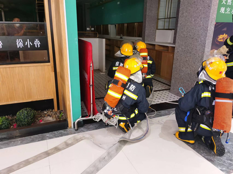 演练假设:3楼一餐厅着火有人员被困,且有液化气罐。单位微型消防站人员立即展开初期火灾扑救,并拨打“119”电话求救,消防救援人员到场后,带队干部根据现场情况进行任务分工,从火情侦查、力量展开、火灾扑救、疏散人员等方面迅速展开战斗。整个演练过程全体人员防护装备佩戴整齐,有条不紊,充分展现了过硬的业务素质。演练结束后,带队干部对此次演练进行了认真分析总结,肯定了此次演练的成效,同时也指出了演练过程中存在的问题和不足。
