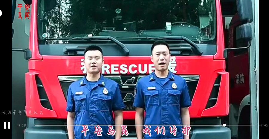 视频中,辖区群众对马尾社会治安、消防安全、生产安全、生态环境等安全程度表示十分满意,纷纷竖起大拇指,为平安马尾建设点赞。平安创建就在身边,从身边做起,从现在做起,消防救援人员高呼“平安马尾,我们守护”,为平安马尾代言。