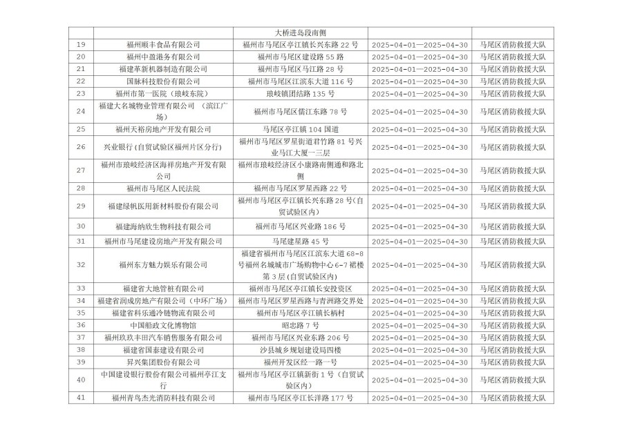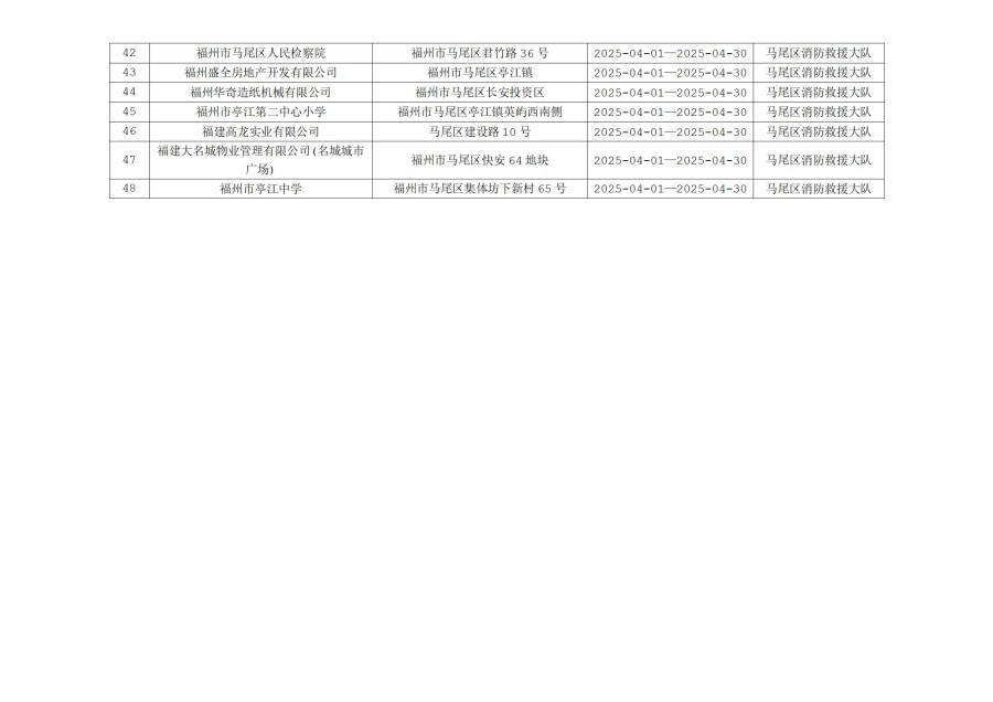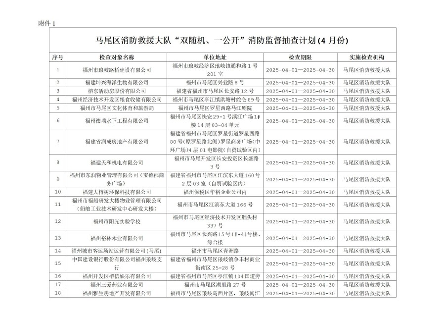 附件: 1. 马尾区消防救援大队“双随机、一公开”消防监督抽查计划(4月份)