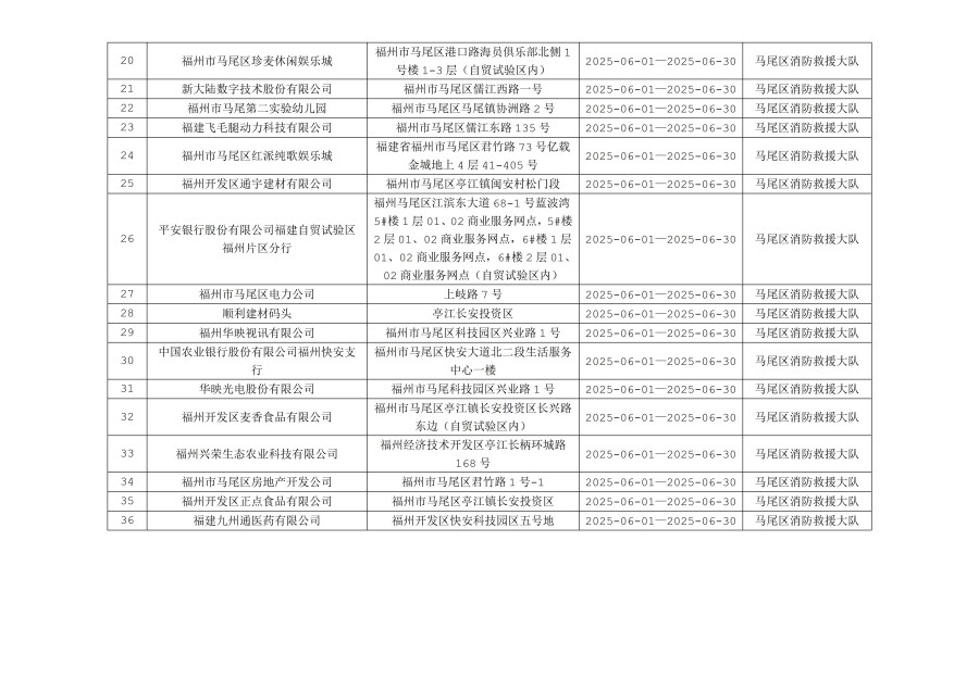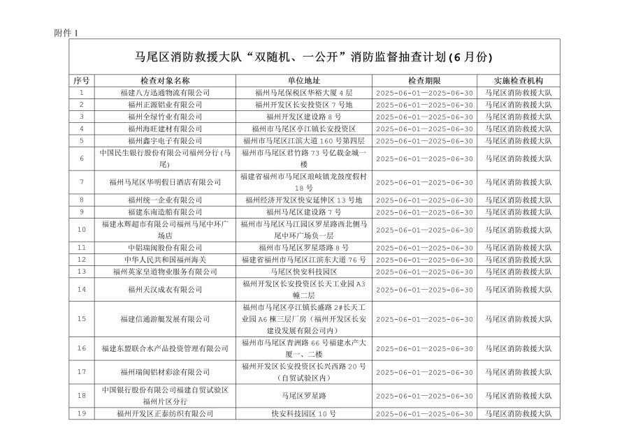 附件: 1. 马尾区消防救援大队“双随机、一公开”消防监督抽查计划(6月份)