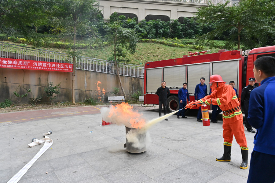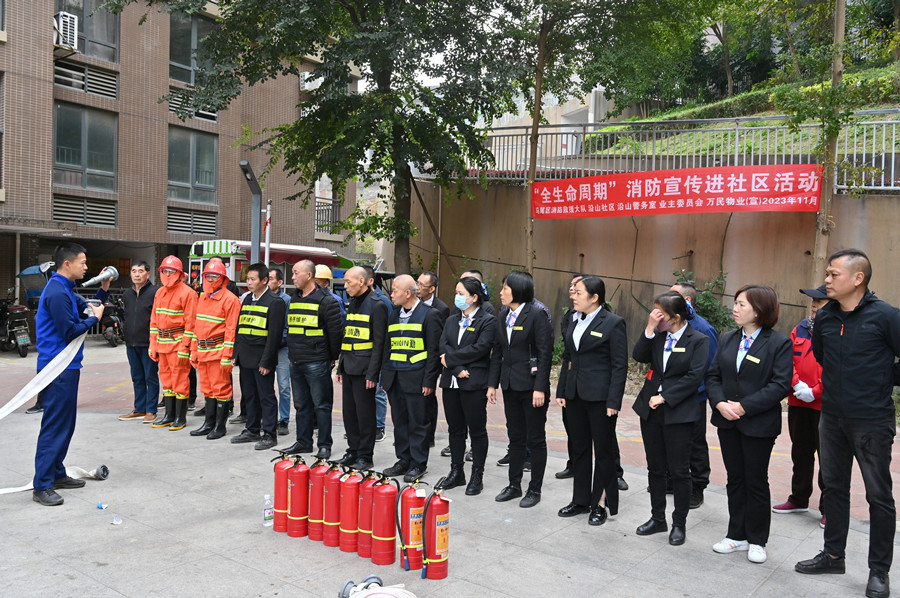 随后,大队宣讲员组织社区微型消防站工作人员、物业、保安开展业务技能培训,详细讲解了灭火器、水带等消防设施使用方法和操作流程,并进行了油盆灭火实操,现场指出纠正错误的操作方法,切实提升了社区工作人员初期火灾处置能力。
