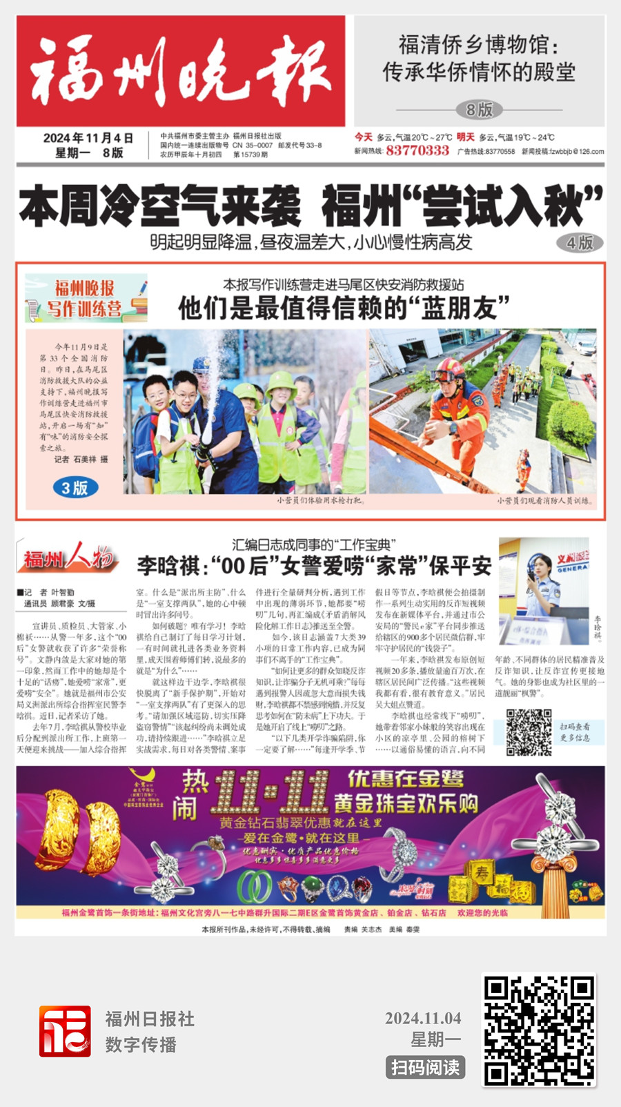 11月4日,福州晚报头版以《他们是最值得信赖的“蓝朋友”》标题导读,3版整版对该活动进行报道。