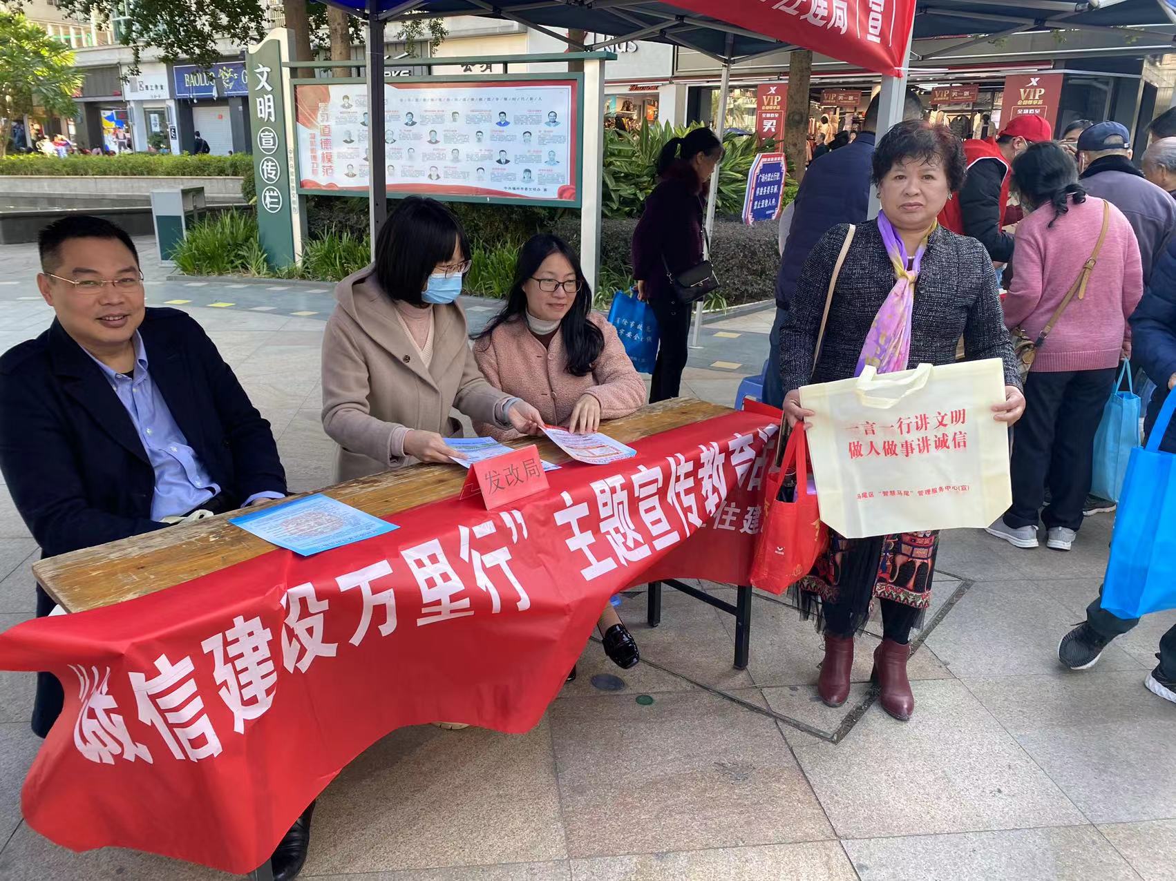 12月3日上午,马尾区发改局在步行街开展“一言一行讲文明 做人做事讲诚信”宣传活动。